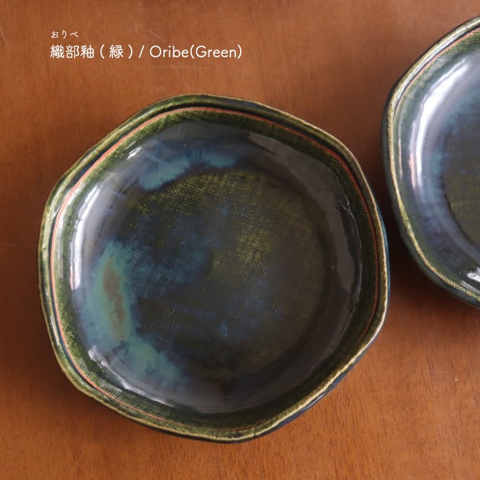 透明感のある淡い青磁色が爽やかな御深井(おふけ)釉と、深い緑が美しい織部(おりべ)釉。どちらも食卓を華やかに彩ってくれそうです♬