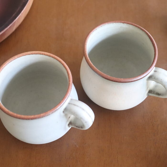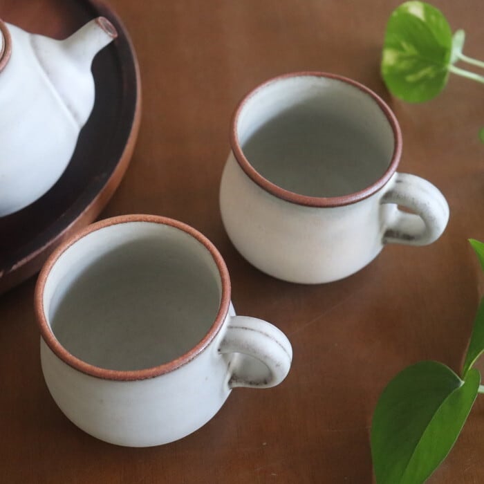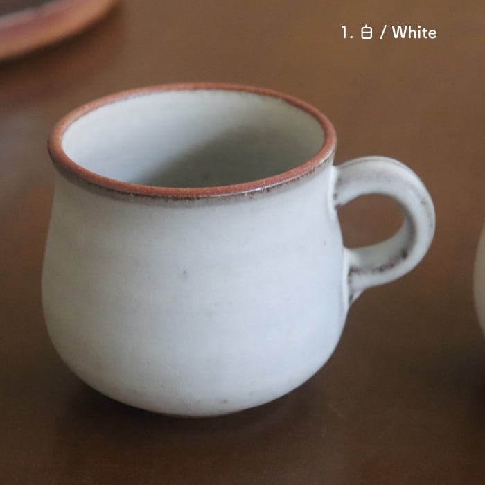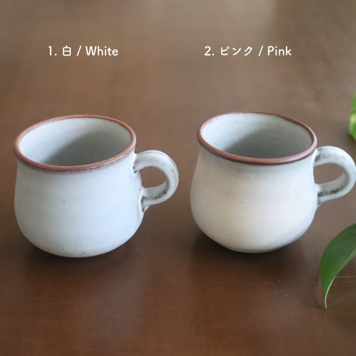 コロンとしたやや肉厚のフォルムと、ちょこんと小さな取っ手が愛らしいマグカップ。ピンクと白のほんわりした色合いもフォルムにマッチして、チャーミングな雰囲気に。コーヒーや紅茶、ハーブティーなどいろいろに楽しめそうです。