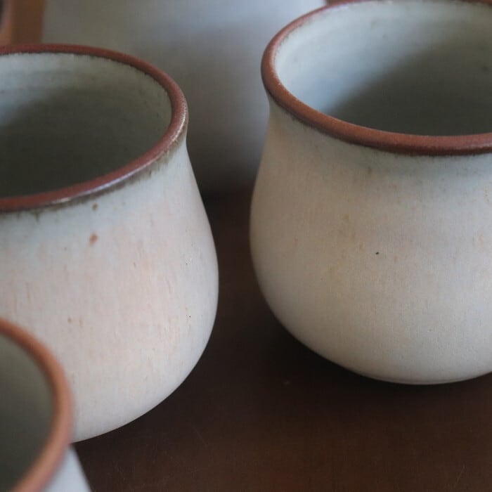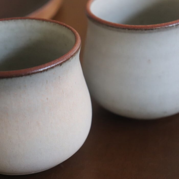 作り手の比呂さんは、故郷の水戸(茨城)でひとり作陶されている作家さん。土の本能をそがしたくないので、あえて大きさや厚みを揃えることには執着していません、とのことで、それぞれに若干の個体差がありますが。手にとっていただくと、ひとつ一つ丁寧に作られているのがよくわかります。