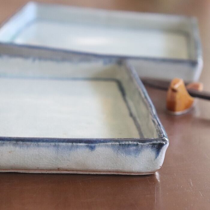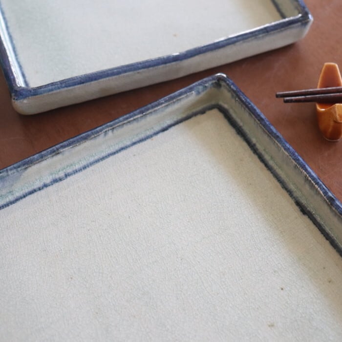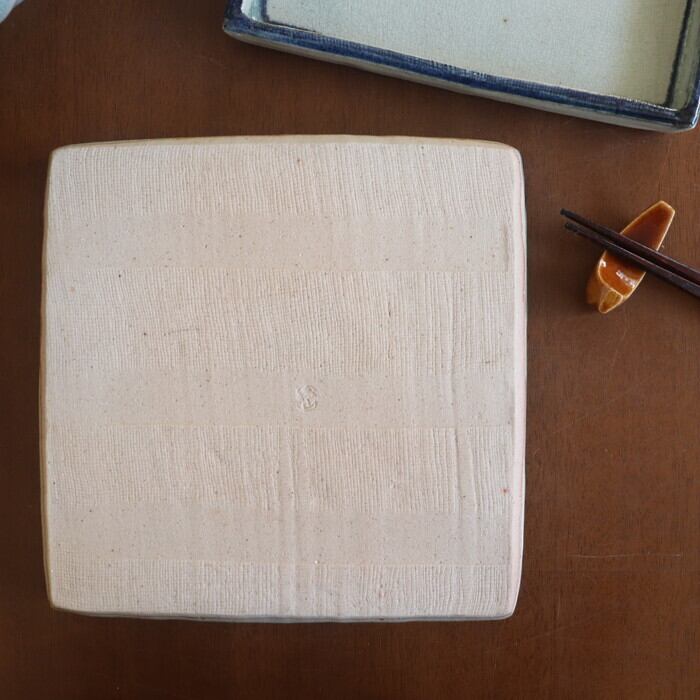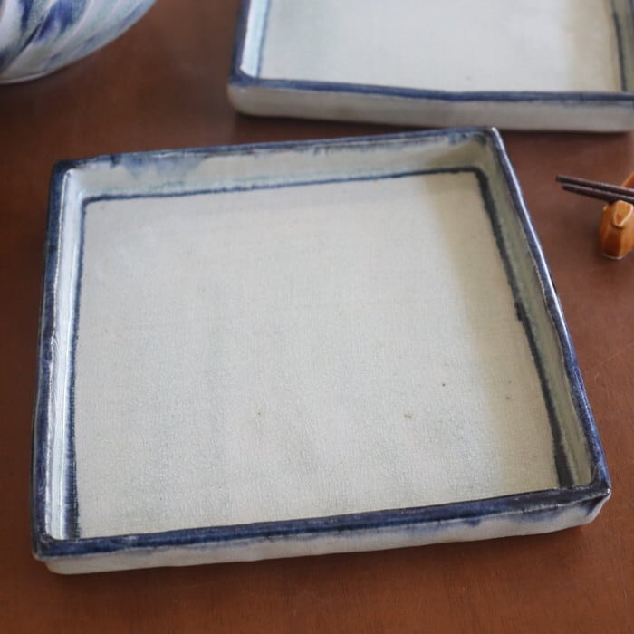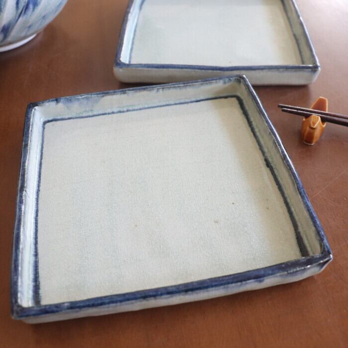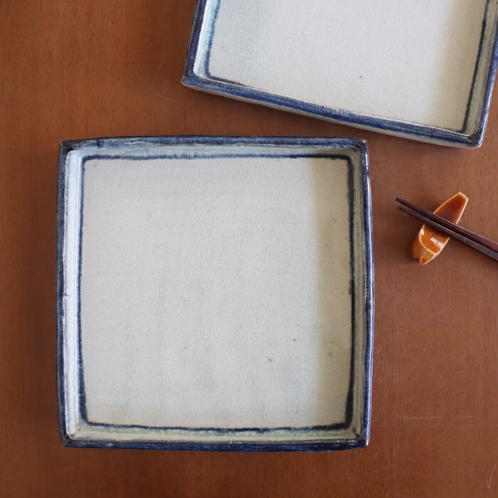 瀬戸赤津焼 拝戸窯稲山 6寸正角皿 御深井