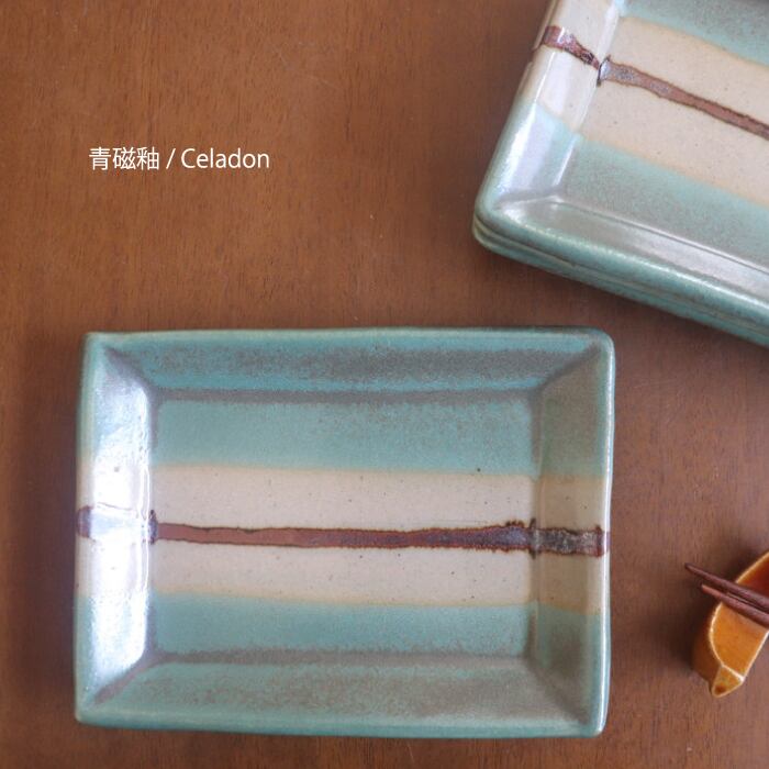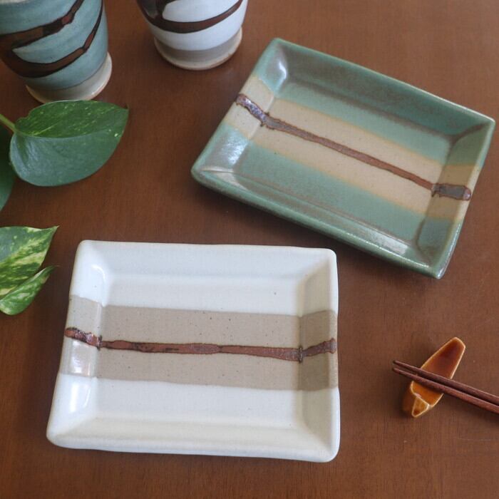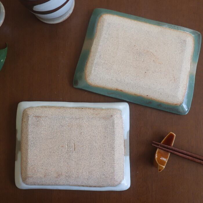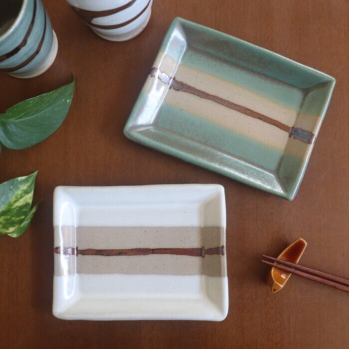 益子焼の伝統的な青磁釉(青)と糠白釉(白)を使った2色のデザインは、重すぎず、カジュアルすぎずな適度なバランスで、和にも洋にも使いやすそう。日常のパッと使いにオススメです。