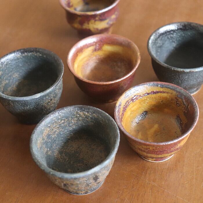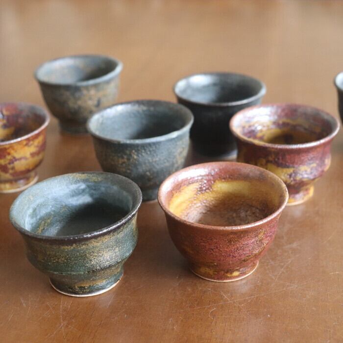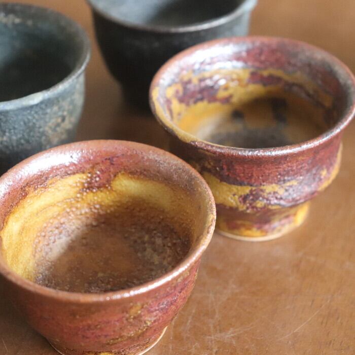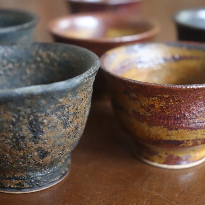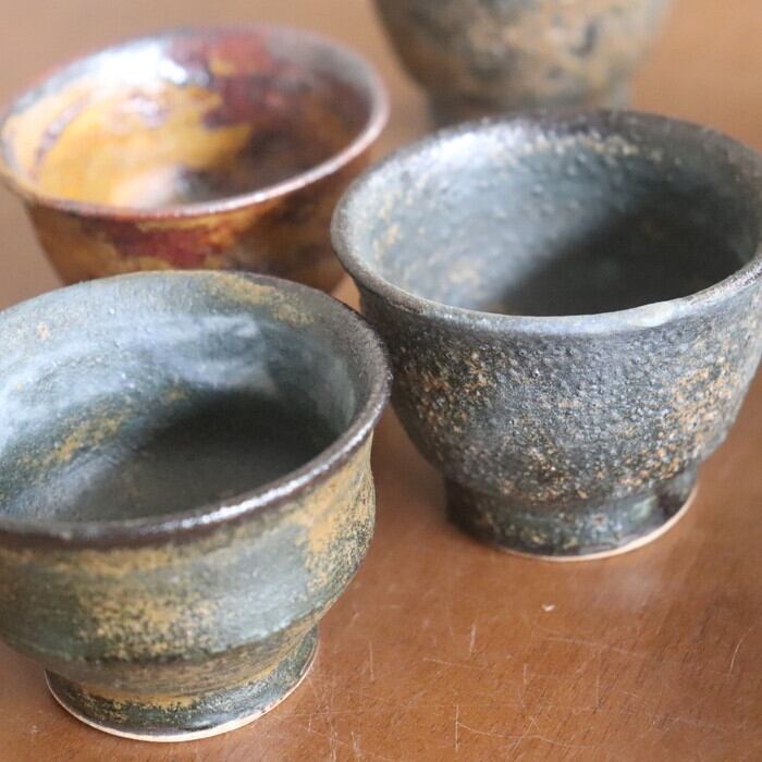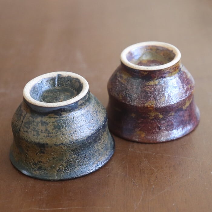 益子焼・健一窯/大塚 雅淑 ぐい呑み 青錆/赤錆