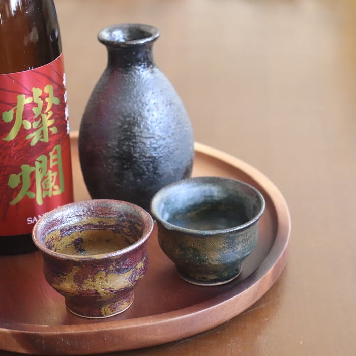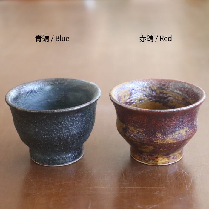 色はネイビーベースの青錆と、赤茶ベースの赤錆の2色。サビついた金属のようなザラザラした表面の仕上りが、重厚感を醸し、渋くて落ち着いた雰囲気に。お揃いの徳利(#498、#499)とセットで、お酒好きさんへのプレゼントにもおススメです♬