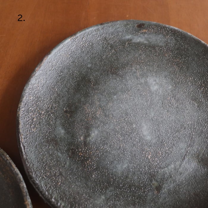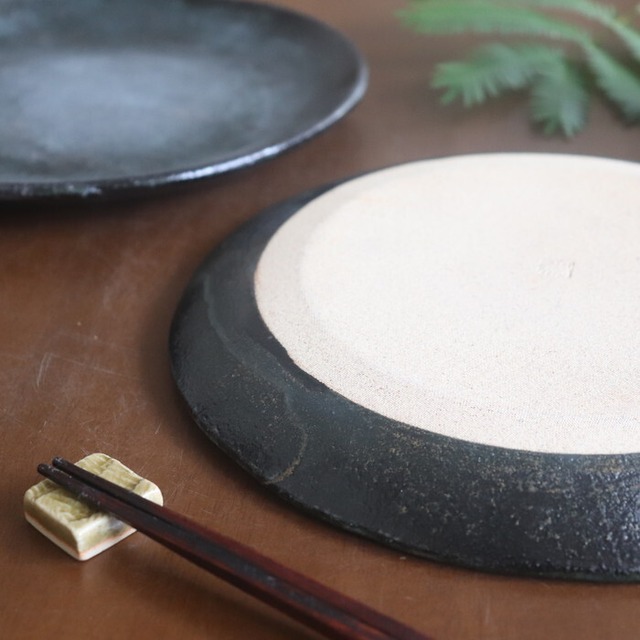 メタリックのような輝きを放つ益子焼(栃木県)の7寸皿。底はフラットな形状で、ワンプレート使いにも便利なサイズ感です。朝食のトーストから、お寿司やお刺身、チャーハンにパスタ、生姜焼きやハンバーグなどの定食用などなど、多用途に活躍してくれそうです。
