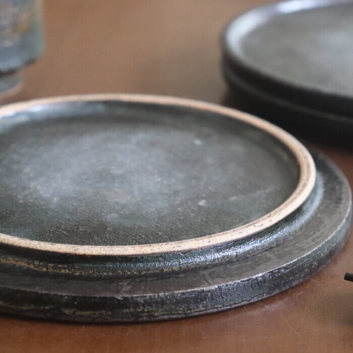 益子焼 健一窯 リム皿 青錆 Mashiko-yaki Rim plate 19cm #508