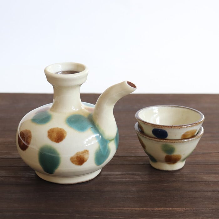 やちむん・常秀工房 カラカラ&お猪口セット 三彩
