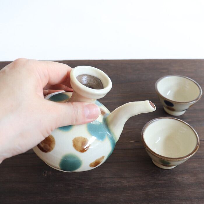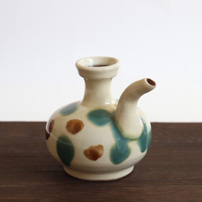 中央にある徳利のような入れ口からお酒を入れ、上向きの美しい注ぎ口からお猪口やぐい呑みに注ぐ構造になっています。コロンとした愛らしいフォルムも魅力。