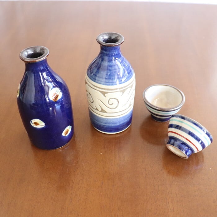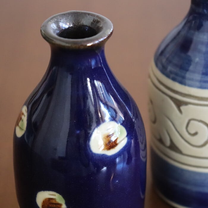 やちむん(沖縄の焼き物)の徳利。片手で握りやすい1合サイズで、1~2人呑み用にぴったりです。シュっとしたフォルムと色、デザインがかわいくて、食器棚に入っているだけでにやにやしちゃいそうです。お酒好きなご友人への贈り物にもオススメです。