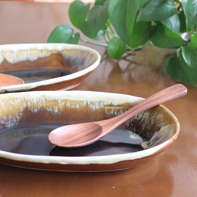 益子焼・健一窯/大塚 雅淑 オーバル鉢 飴釉掛合せ