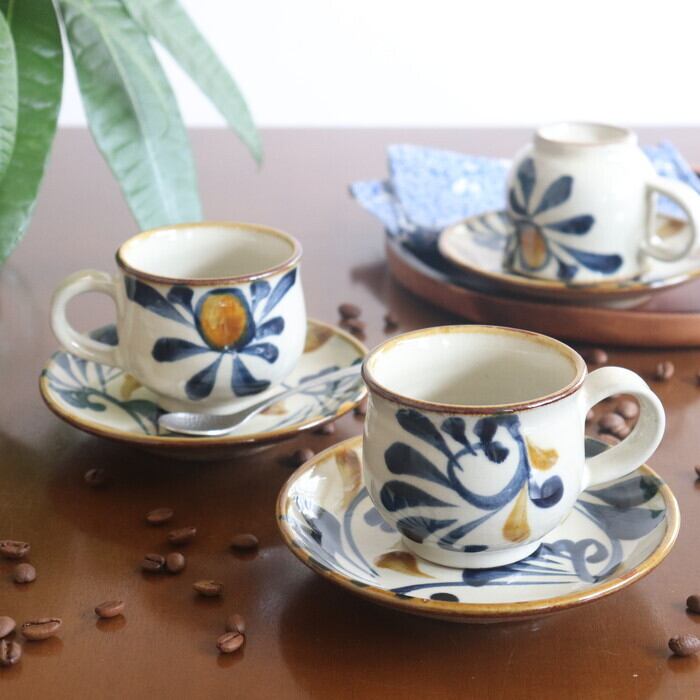やちむん・陶眞窯 カップ&ソーサー 唐草