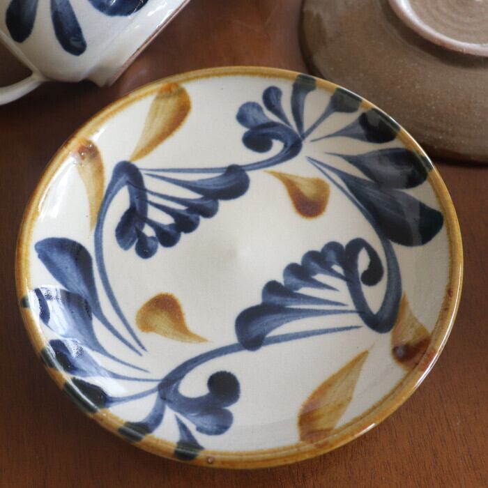 凹みが無く、お皿単体としてもご利用いただけるソーサーは、伸びやかな唐草が全体に描かれた華やかなデザイン。焼き菓子や鮮やかなフルーツを引き立たせてくれそうです。