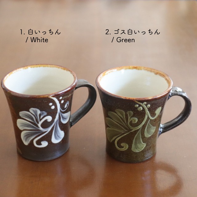 土の質感を感じる薄茶色の土台に、生クリームのように立体的な唐草が描かれ、素朴ながら華やかな雰囲気。コーヒーやお茶、ハーブティなど、幅広く活用できそうです♬