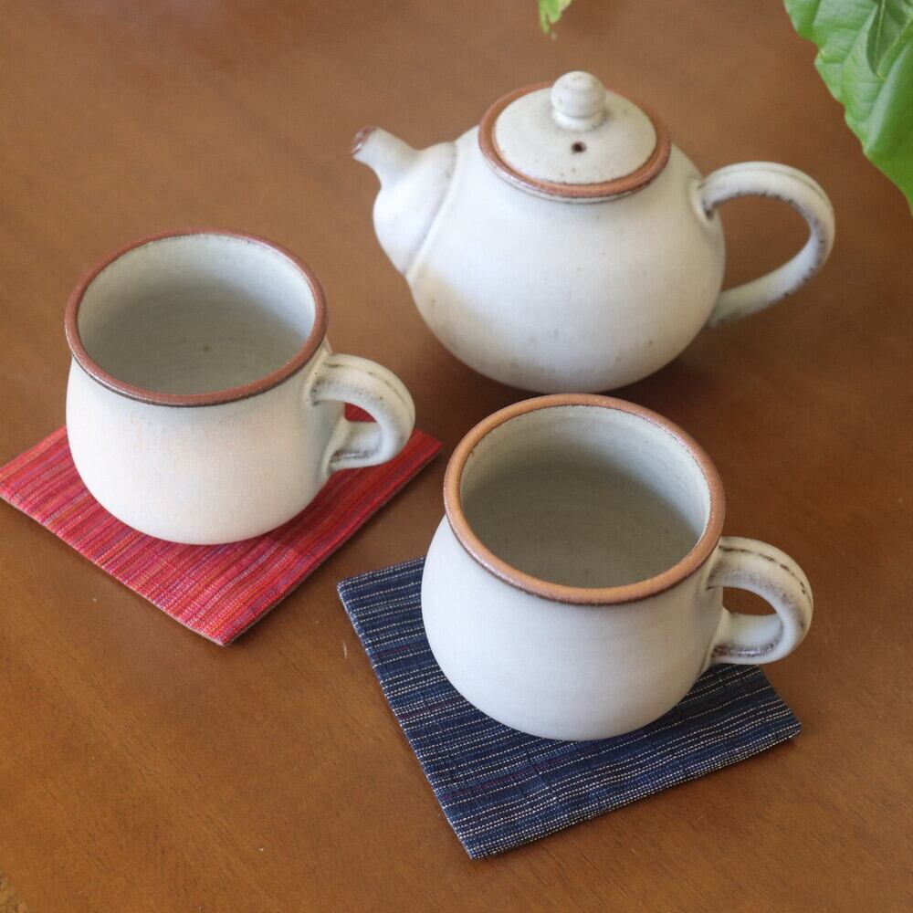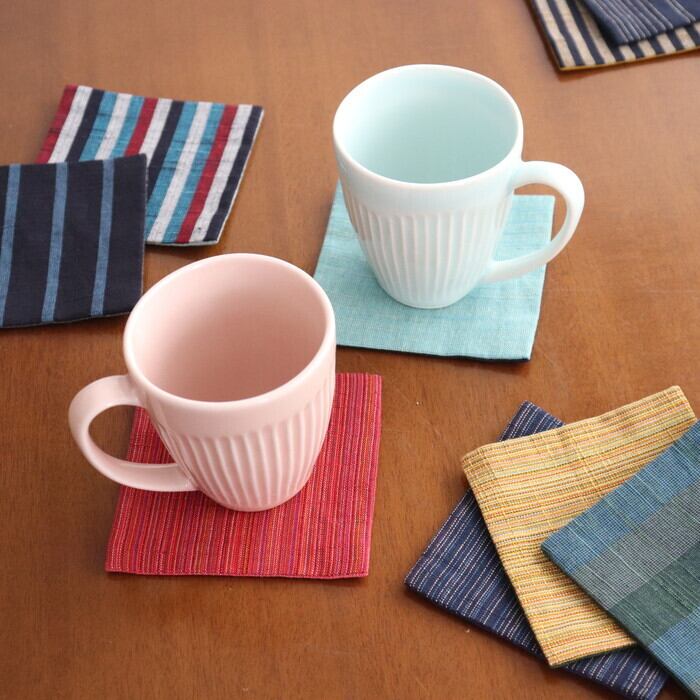 両面リバーシブルで使えるコースターは、マグカップやコップをのせるのにちょうど良い大きさ。汚れたら洗濯機で手軽に洗えるのも嬉しいです。使い込むほどにやわらかく、風合いを増していくのを楽しんでください。