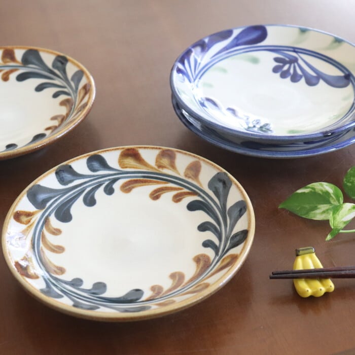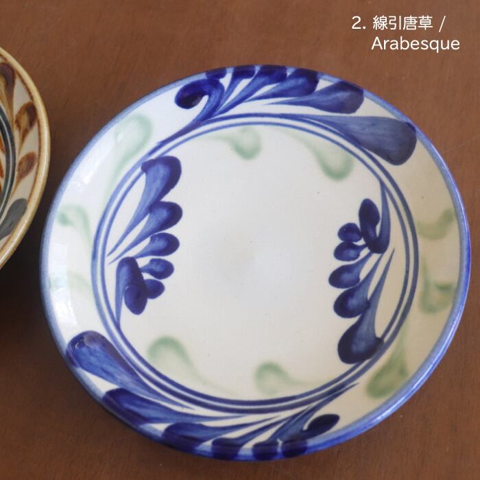 やちむん 陶眞窯 6寸皿 唐草 Yachimun Plate 18cm #405